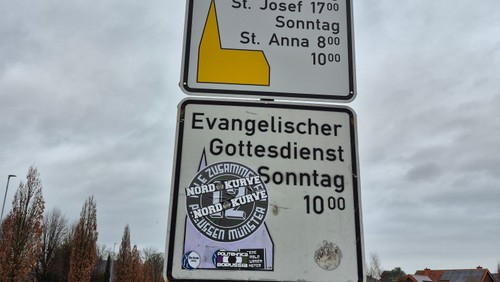 Neulich blieb ich am Ortseingang von Neuenkirchen stehen – vor einem unserer kirchlichen Hinweisschilder. Ein wilder Mix aus Aufklebern klebte darauf, so groß, dass man die Information zum evangelischen Gottesdienst kaum noch erkennen konnte.